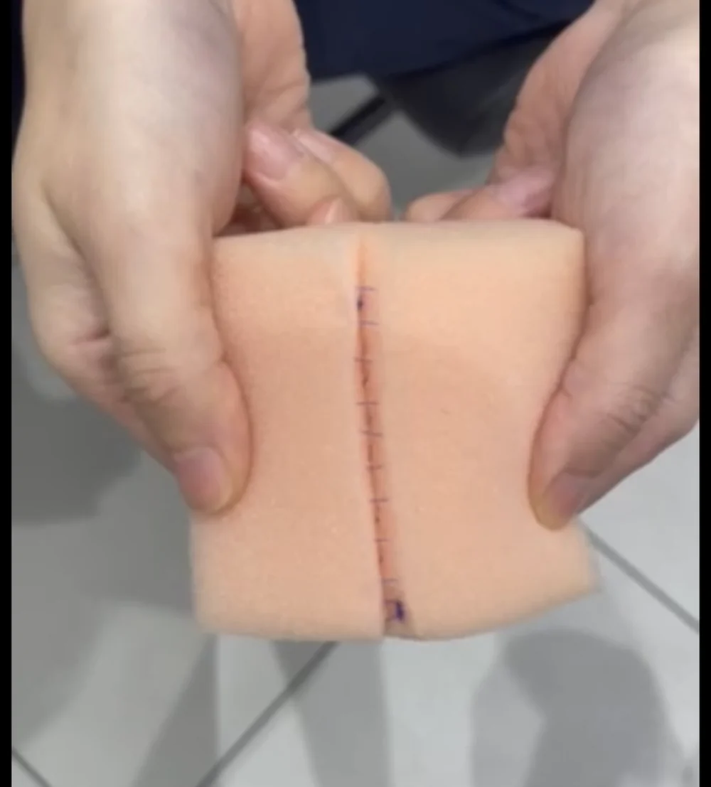 抜糸なしは溶ける糸で傷の中を細かく縫っていきますので、外に糸の縫い目がでてきません。