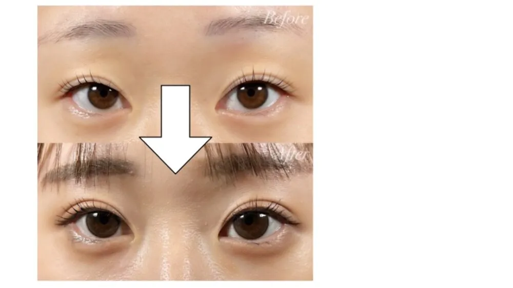 実際に術後は目と眉の距離も近くなり、二重幅も広くなったことで目元の印象を変わったのがお分かりいただけるかと思います。
