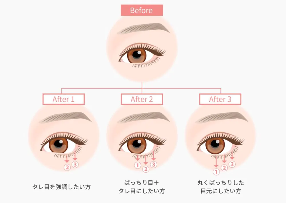 この下まぶたを下げる位置ですが、位置を調整することで他にも様々な効果を期待することが出来ます。