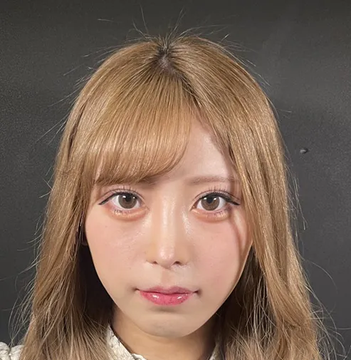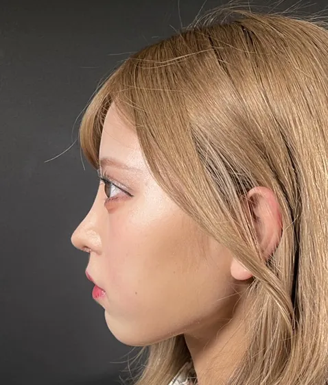 側面からの様子をみてみましょう。鼻が短いのが分かります。短く低い鼻の場合は、鼻根の高さを出して鼻の始まりを上方向に向かって伸ばし、鼻尖・鼻柱は下方に伸ばすことが効果的です。