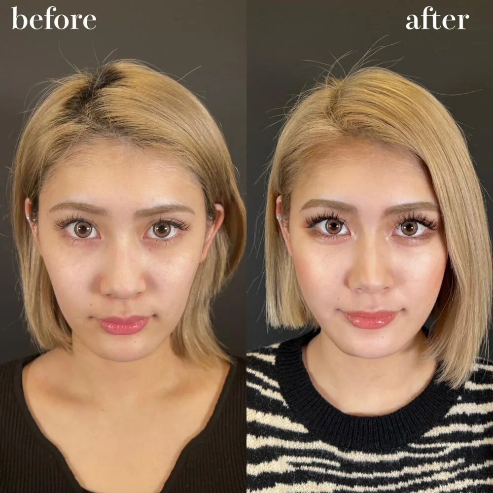 Vラインとは、頬骨から顎先までを直線的なVラインで輪郭を形成します。V字のような輪郭で、美人・かっこいい輪郭を作ることができます。与える印象:キレイ、大人っぽい、エレガント