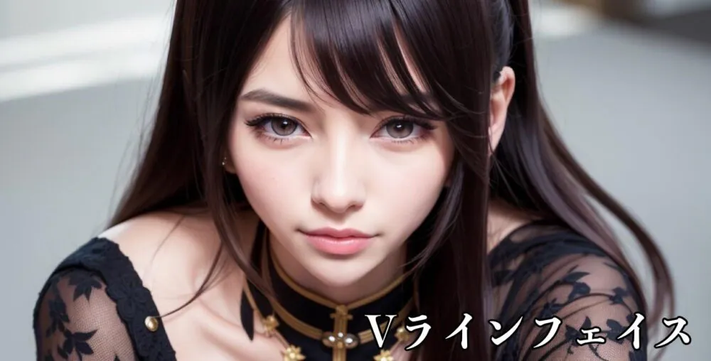 Vラインとは、頬骨から顎先までを直線的なVラインで輪郭を形成します。V字のような輪郭で、美人・かっこいい輪郭を作ることができます。与える印象:キレイ、大人っぽい、エレガント