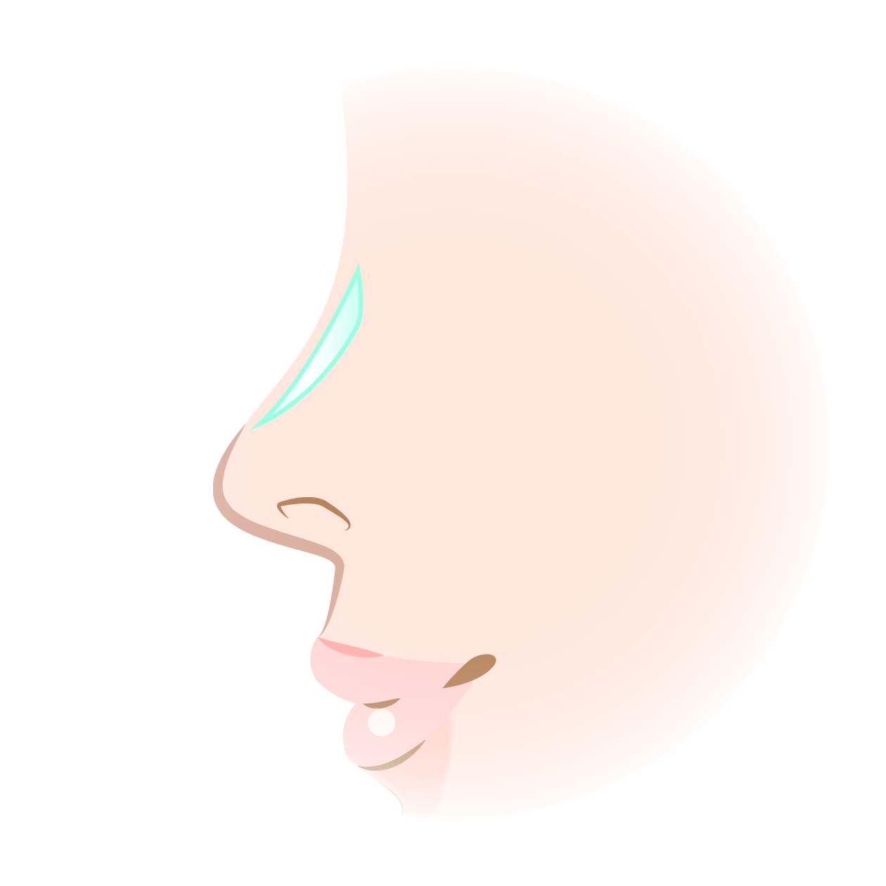 目と目の距離が離れ目を決める要素として重要であるのはもちろんですが、離れ目は距離やバランスだけで決まるものでもなく、実際には他の部位によって影響を受けることがあります。代表的な部位が「鼻」であり、目と目の間の部位を「鼻根部」が呼ばれています。この鼻根部が低いと、顔全体が平坦なイメージになるため、目と目の距離が離れて見えてしまいます。