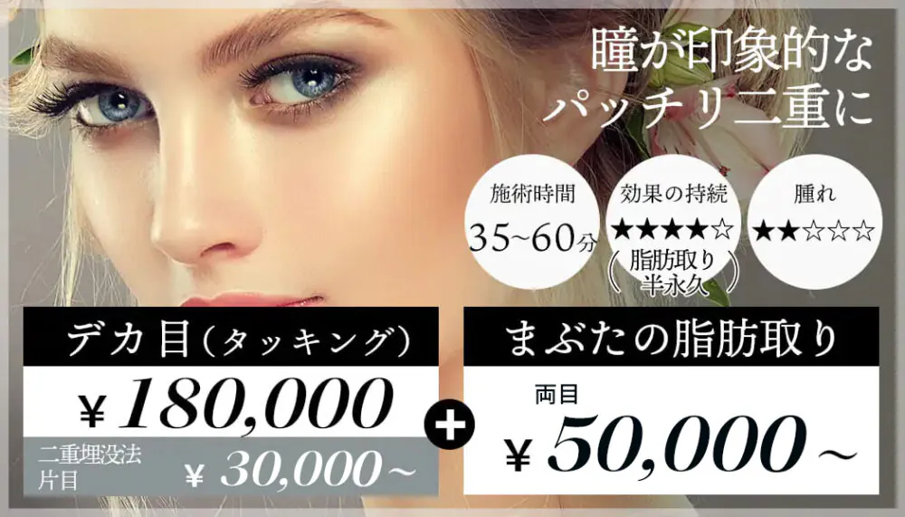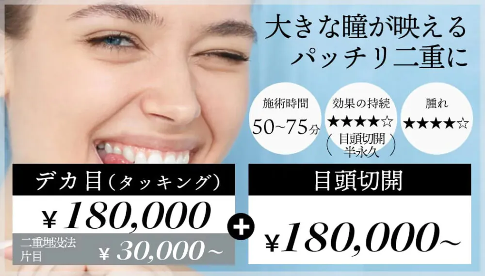 【デカ目(タッキング)+R式クイックアイ(埋没法)+目頭切開】