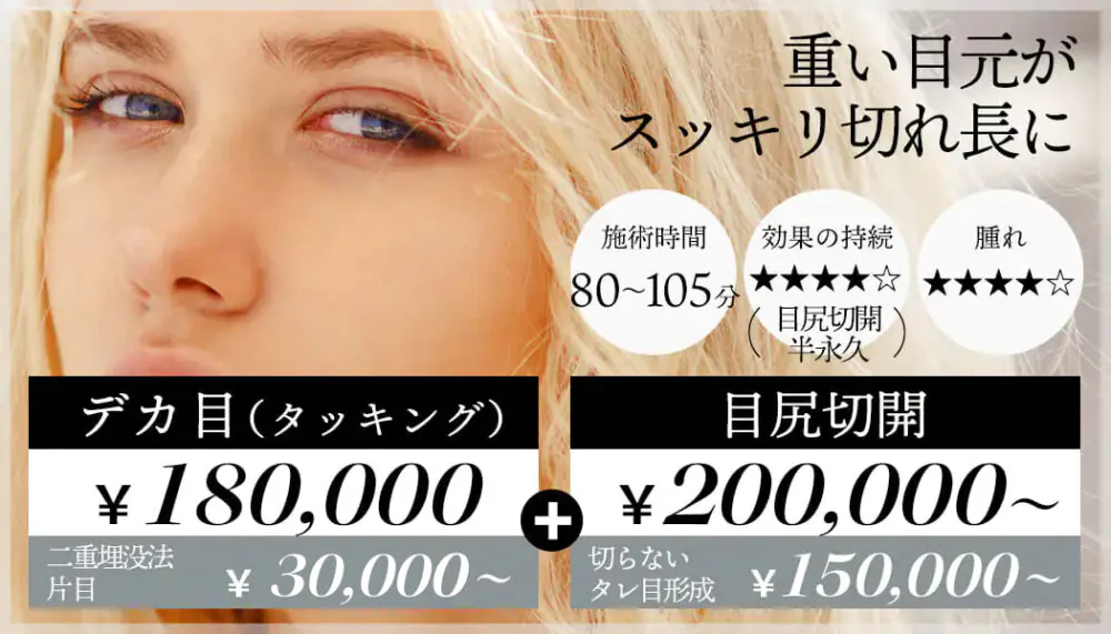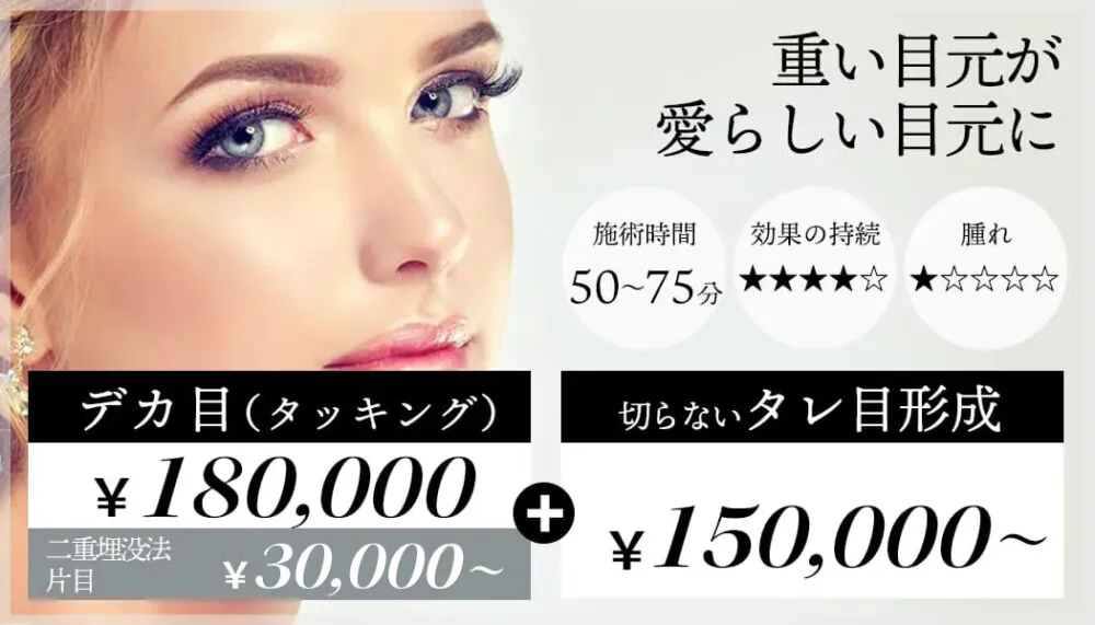 【デカ目(タッキング)+R式クイックアイ(埋没法)+タレ目形成】