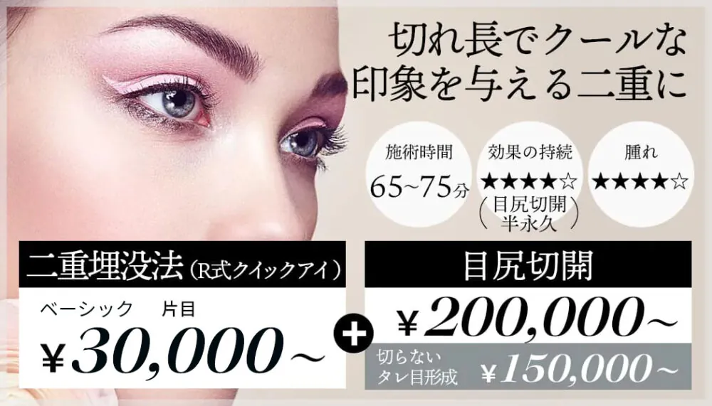 【R式クイックアイ(埋没法)+目尻切開+タレ目形成 】