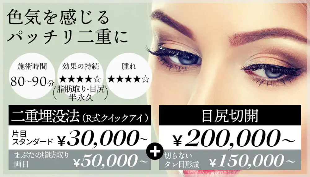 【R式クイックアイ(埋没法)+まぶたの脂肪取り+タレ目形成 】
