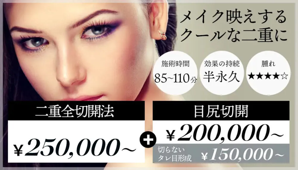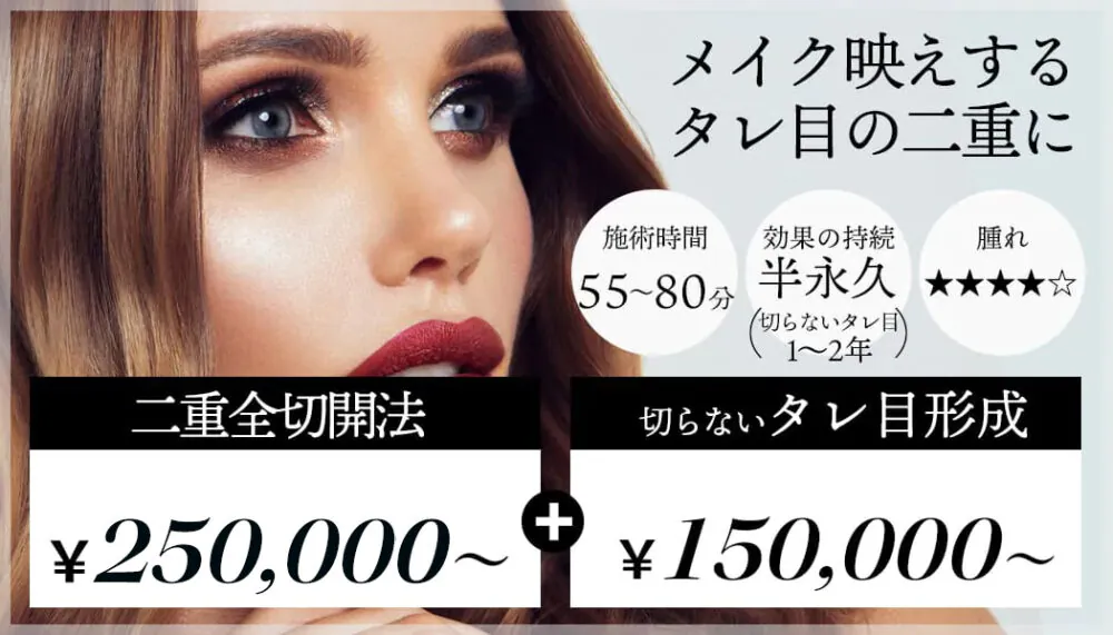 【二重全切開法+目尻切開+タレ目形成 】
