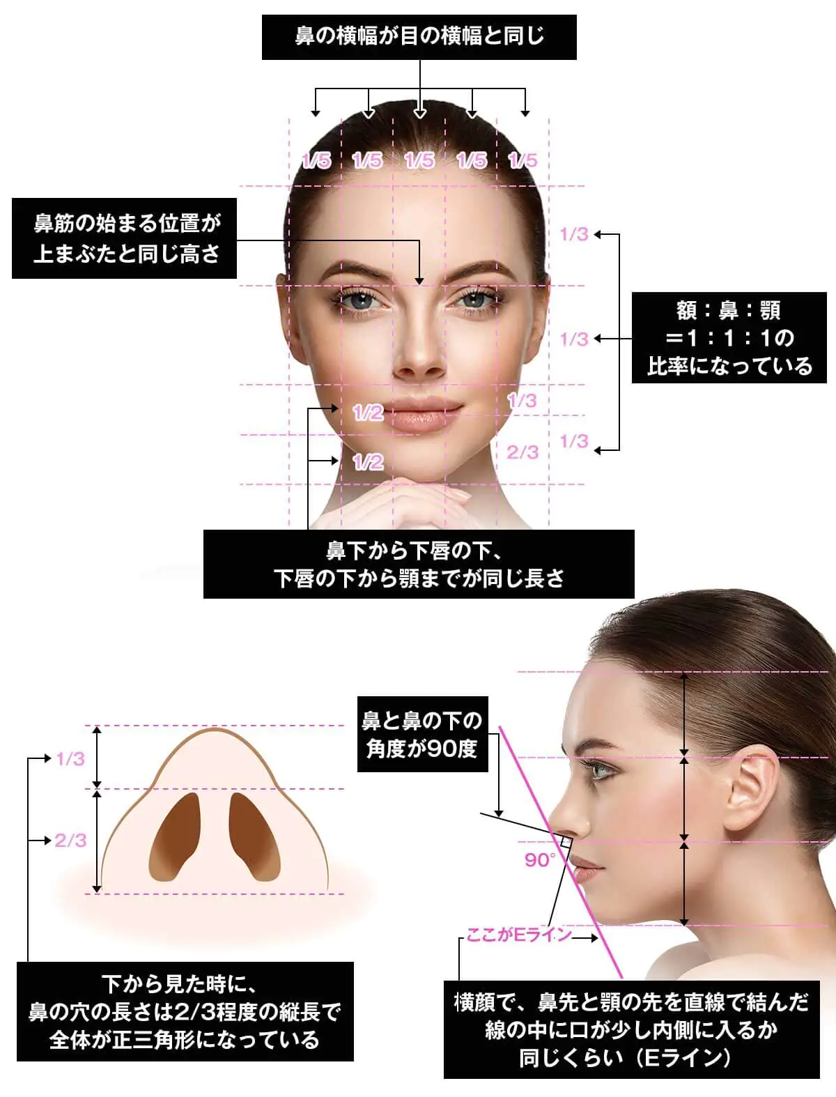 鼻先をシャープにする治療法は鼻尖形成と呼ばれ、余分な軟骨や脂肪を除去し、鼻先がツンとした理想的なラインを形成します。