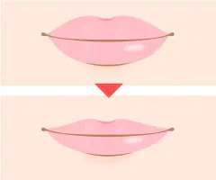 厚くて腫れぼったいと感じる唇を一部切除し、薄くする手術です。切除範囲により全体的に薄くすることも可能です。またデザインによって好みの唇に形成することが可能です。例えば今流行りのピーナッツリップなど下唇の形のみ形成することも可能です。