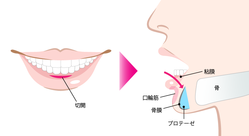 口腔内からアプローチするので、お顔表面には傷が残りません。