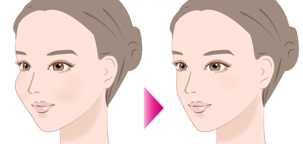 頬骨は、中顔面の一部を構成している骨で、前方や側面への発育が強いとゴツゴツした印象の輪郭となりがちです。頬骨縮小術は、そういった発達を小さめに整形することで、柔らかで優しい印象となり、中顔面の横幅を小さくする施術です。