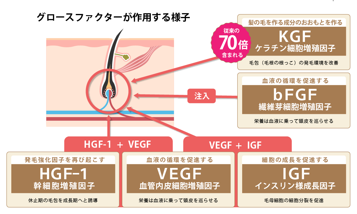 BENEV plus成分:KGF・HGF・IGF-1・bFGF・VEGF等の成長因子(グロスファクター)