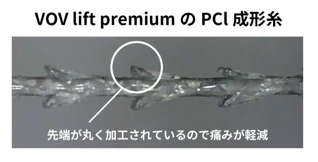 VOVリフトの糸の素材であるPCLは、強度が高くしなやかなのが特徴です。