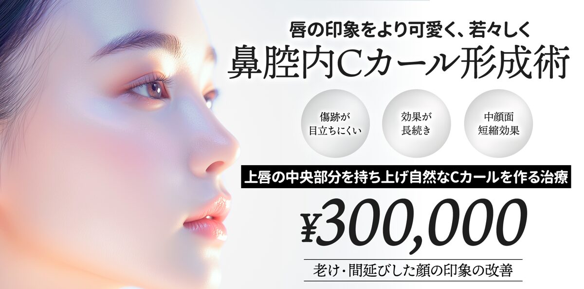 鼻腔内Cカール形成術で、内側人中が持ち上がり短くなるため、口角の位置が低く、外側人中が長い方はよりそれが目立つ可能性があります。