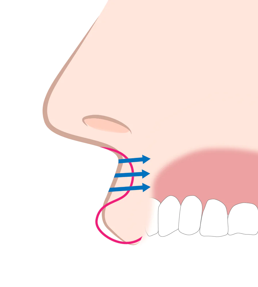 上唇が自然にめくり上がることで、Eラインや中顔面のバランスが整い、愛らしい雰囲気になります。