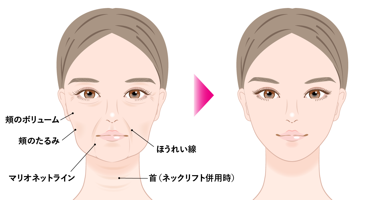フェイスリフトは、顔のたるみを全体的に取り除き、アンチエイジング手術で最も効果的な方法です。