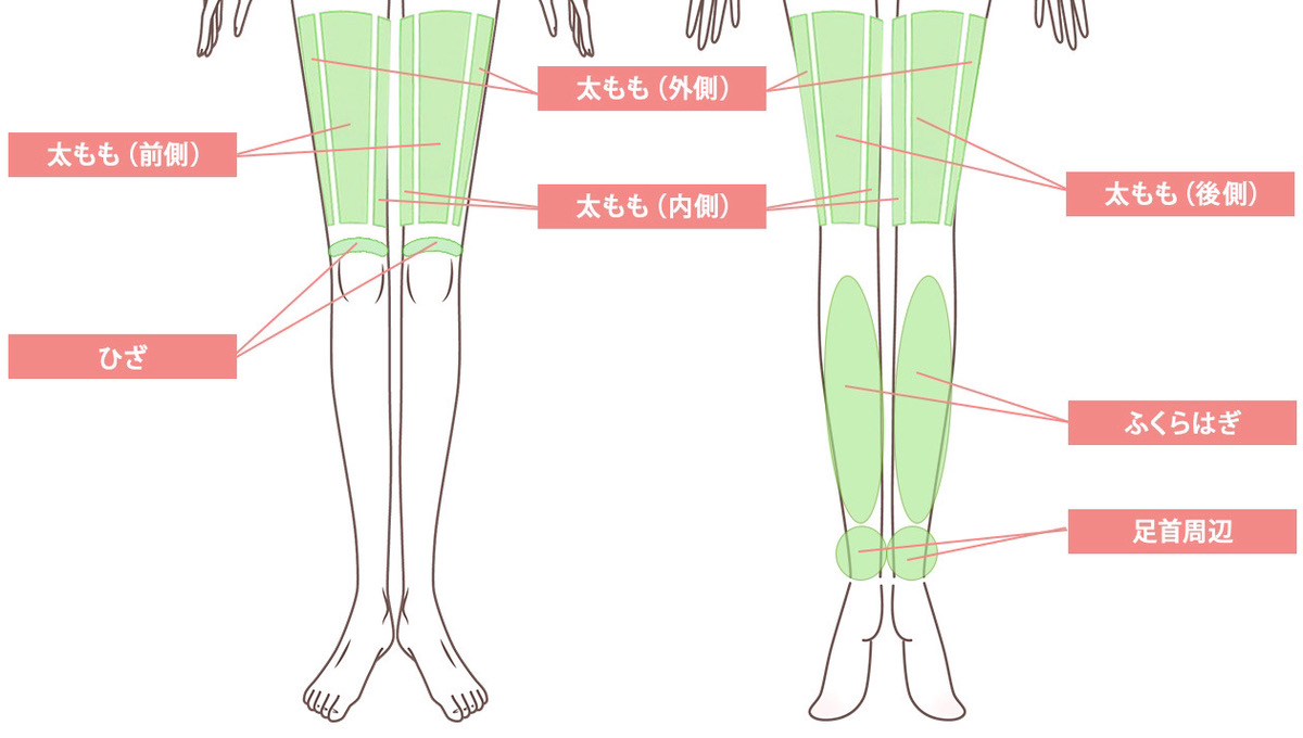 - 膝裏(傷跡が目立たなくなるまで個人差があります)