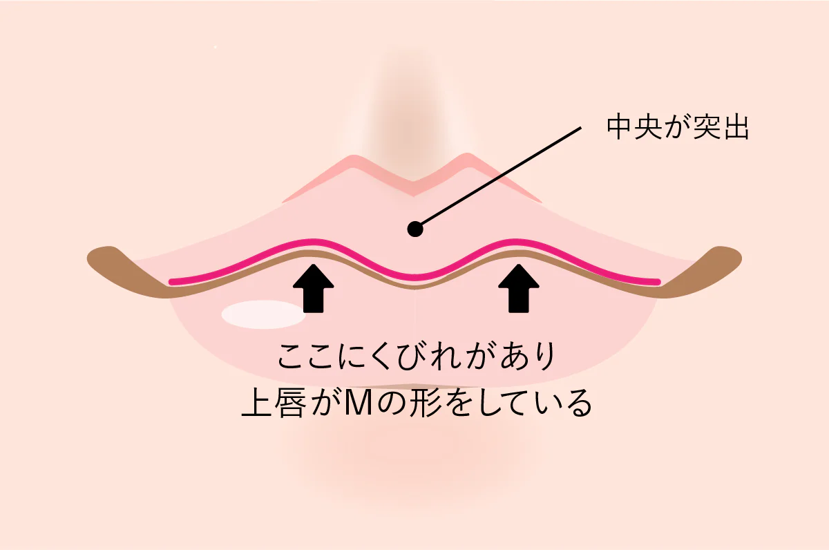 唇の中央部分が持ち上がることで女性らしい柔らかな印象が強調されます。