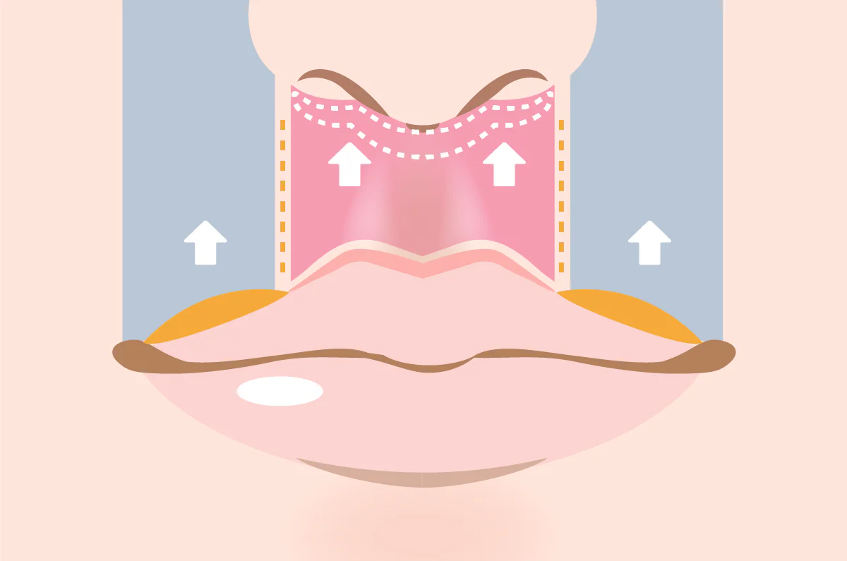 唇や口周辺の筋肉に負担がかかる動作を控えることで、術後の腫れや違和感を軽減できます。 術後2週間ほどは柔らかい食事を意識し、大きな口を開けることを避けましょう。 |
