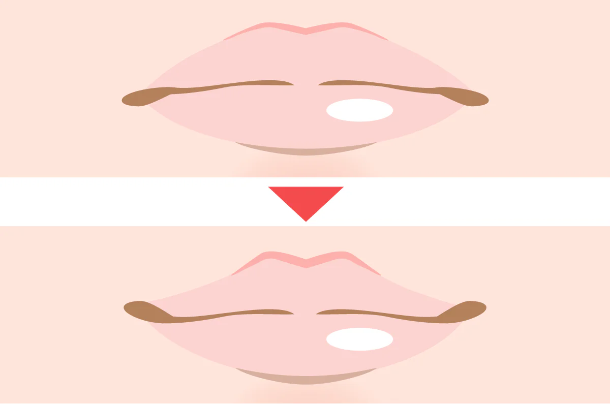 ヒアルロン酸注入による一時的な方法とは異なり、外科的手法で唇の中央をくぼませ、両端にボリュームを持たせることで、長期間効果が持続する仕上がりを実現します。