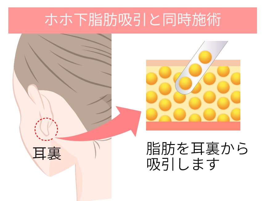 また、ホホ下の脂肪吸引を行う際に同時施術も可能です!その場合は耳の裏から吸引を行い、傷痕は1ヶ所になります。
