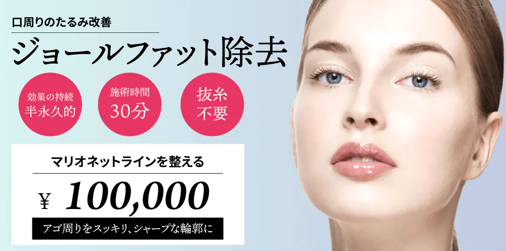 ジョールファット除去では頬の部分の脂肪は吸引しないため、頬がこけることはございません。しかし、吸引しすぎると口横にシワが出やすくなるリスクがあります。